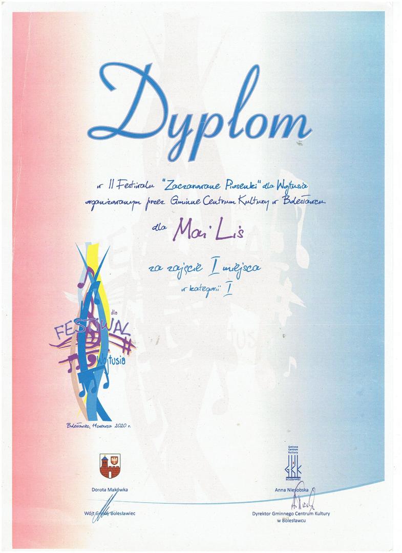 - XII Powiatowy Festiwal „Piosenki z bajki” – I miejsce