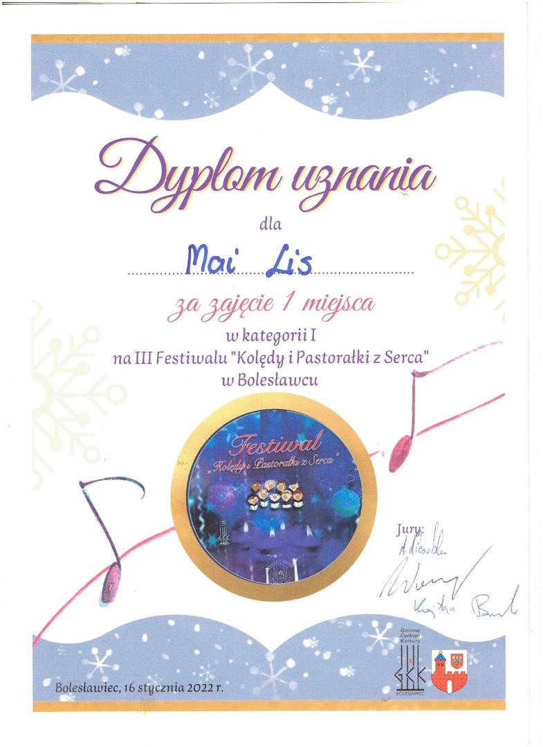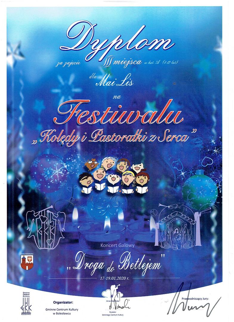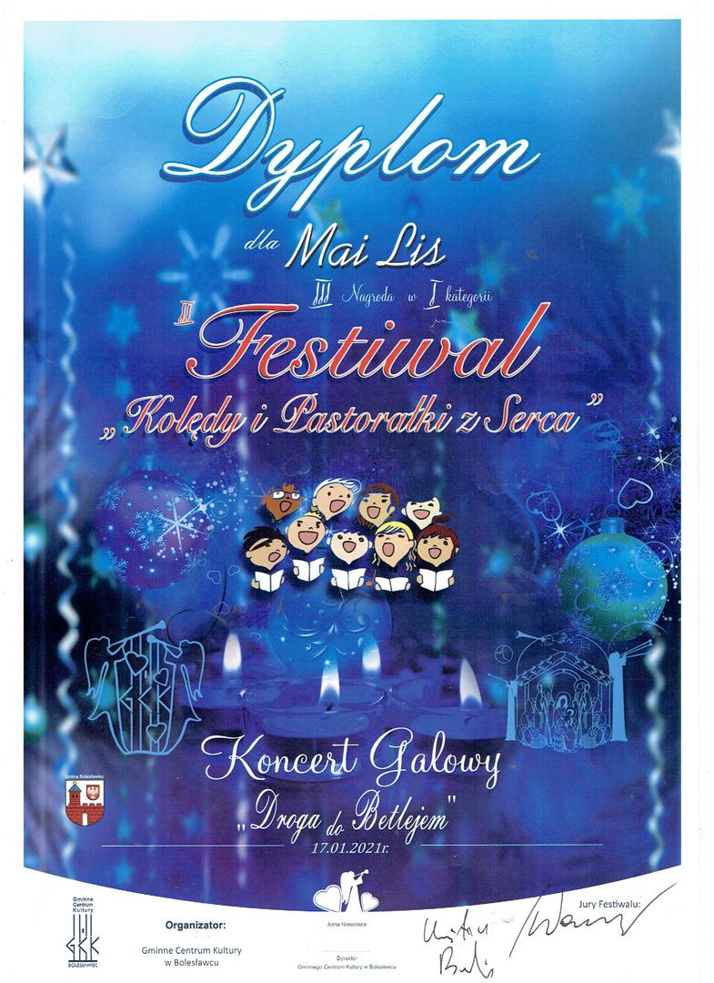 - I Festiwal „Kolędy i Pastorałki z Serca” – III miejsce
