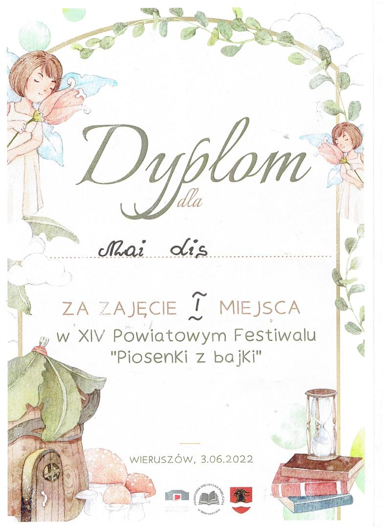 - XIV Powiatowy Festiwal „Piosenki z bajki” – I miejsce