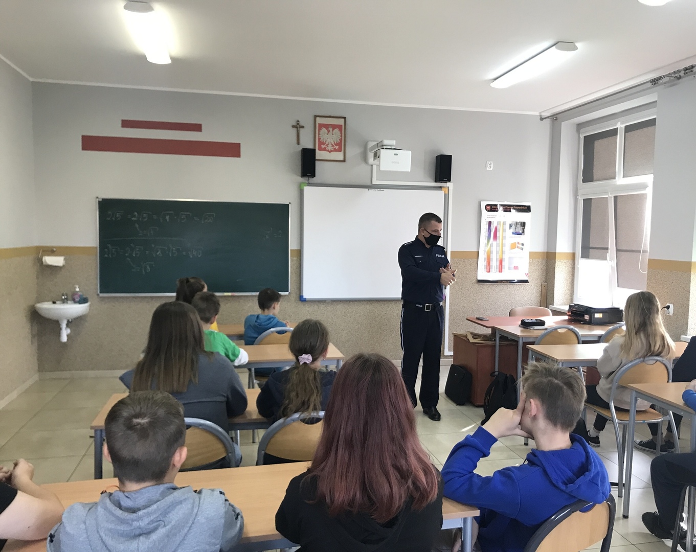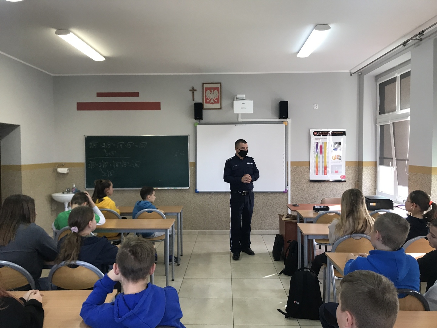 W dniu 27.10.2021 roku w naszej szkole odbyło się spotkanie profilaktyczne prowadzone przez asp. sztab Damiana Pawlaka z Komendy Powiatowej Policji w Wieruszowie. W pogadance wzięły udział klasy od 4 do 8 szkoły podstawowej. Celem spotkania było przygotowanie uczniów do odpowiedzialnych zachowań w różnych sytuacjach oraz promowanie pozytywnych postaw w zakresie bezpieczeństwa ruchu drogowego. Podczas spotkania policjant zwrócił uwagę na bezpieczeństwo w ruchu drogowym, bezpieczeństwo w miejscach publicznych oraz w miejscu zamieszkania. Poruszony został też problem demoralizacji i jej przeciwdziałania. Uczniowie podczas spotkania dowiedzieli się miedzy innymi o konsekwencjach łamania prawa oraz zagrożeniach, jakie niesie za sobą udział w niebezpiecznych zabawach czy stosowanie agresji wobec innych. Podczas rozmowy poruszony został również temat cyberbezpieczeństwa i odpowiedzialnego korzystania z Internetu. Omówione zostały też zagrożenia i odpowiedzialność karna przewidywana za posiadanie środków odurzających i środków psychoaktywnych. W trakcie spotkania uczniowie zadawali pytania dotyczące bezpieczeństwa oraz dzielili się swoimi spostrzeżeniami. Na zakończenie policjant przypomniał dzieciom i młodzieży o obowiązku przestrzegania prawa i porządku publicznego.