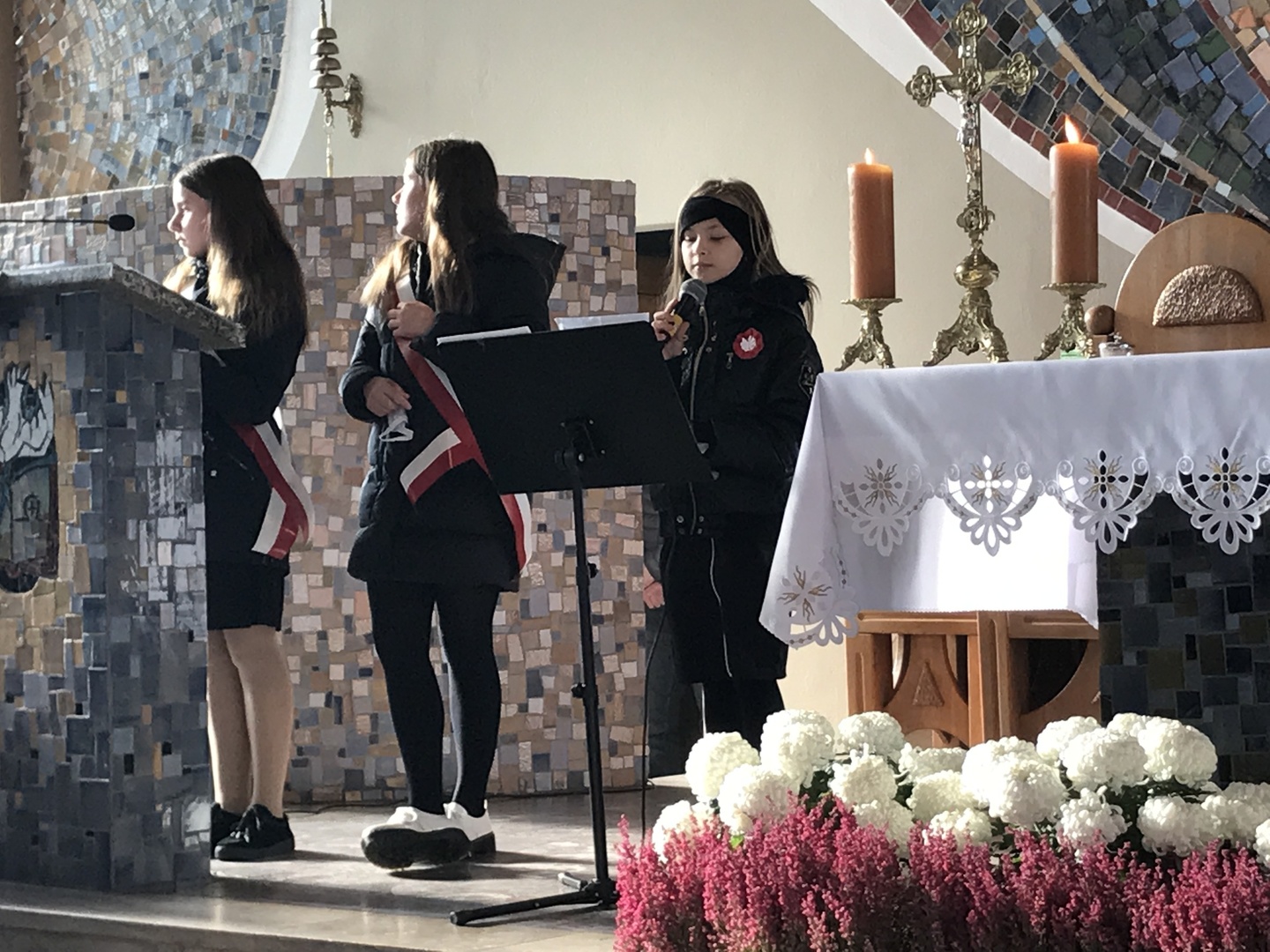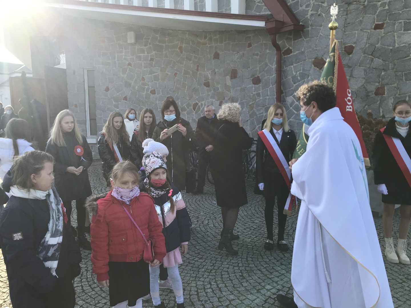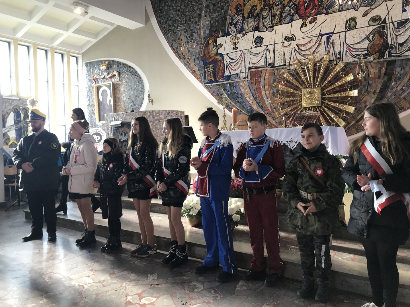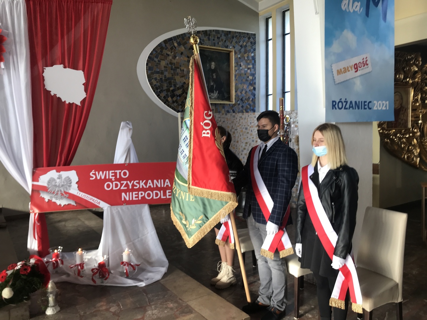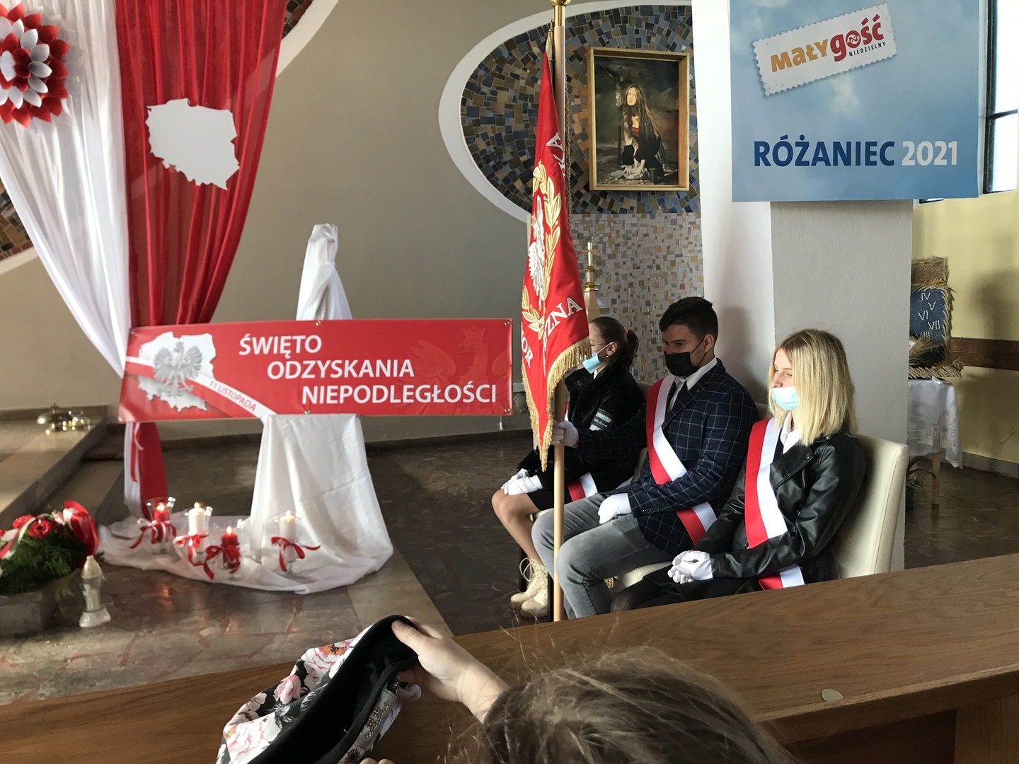 Podczas Mszy św. za Ojczyznę wysłuchaliśmy patriotycznych pieśni i pozwoliliśmy sobie na chwilę refleksji o odwadze, męstwie i uporze Polaków, które zaowocowały dotarciem do Wolności.