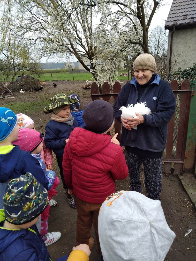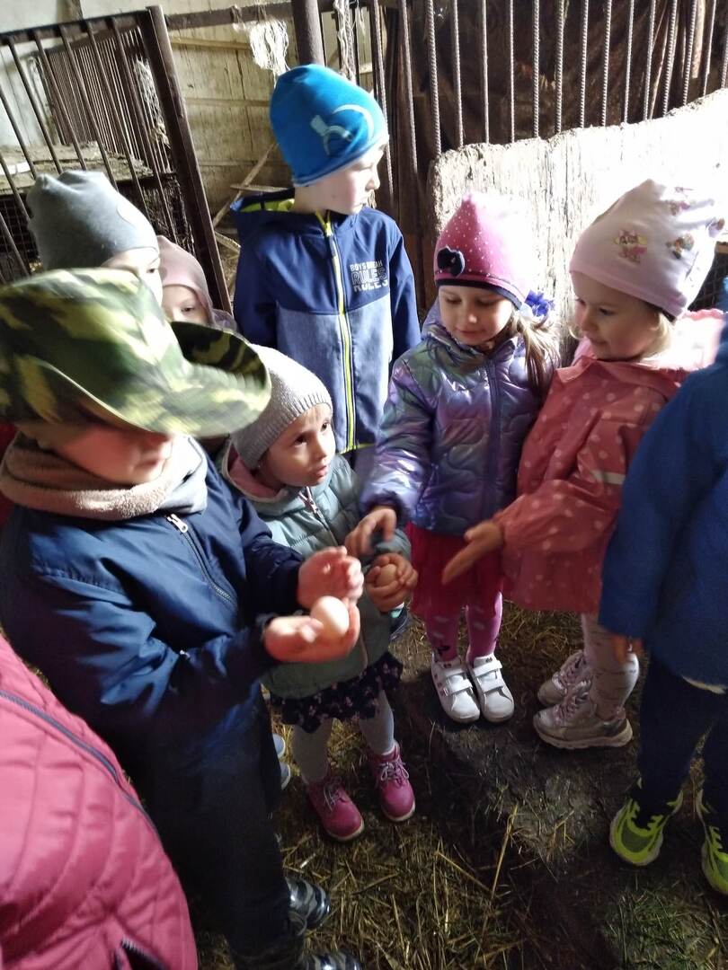 Wybraliśmy się na wiejskie podwórko, aby z bliska poznać zwierzęta hodowlane. Mimo, że mieszkamy na wsi, to nie wszyscy z nas znają życie i zwyczaje tych zwierząt. Trzeba przyznać, że doznaliśmy wielu emocji i wrażeń. Okazało się, że nasze nosy doskonale potrafią rozpoznać nieprzyjemne zapachy. Mieliśmy możliwość oglądania prawdziwej walki kogutów. Poznaliśmy historię prawdziwej przyjaźni gołębia z kotem. Bardzo nam się tam podobało i wiedzy jedno - musimy tam kiedyś wrócić