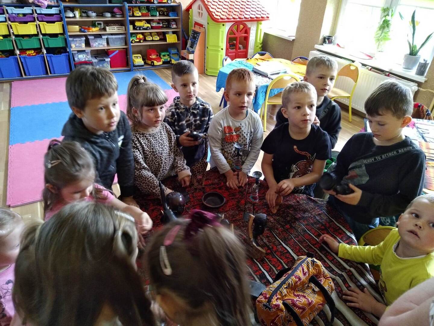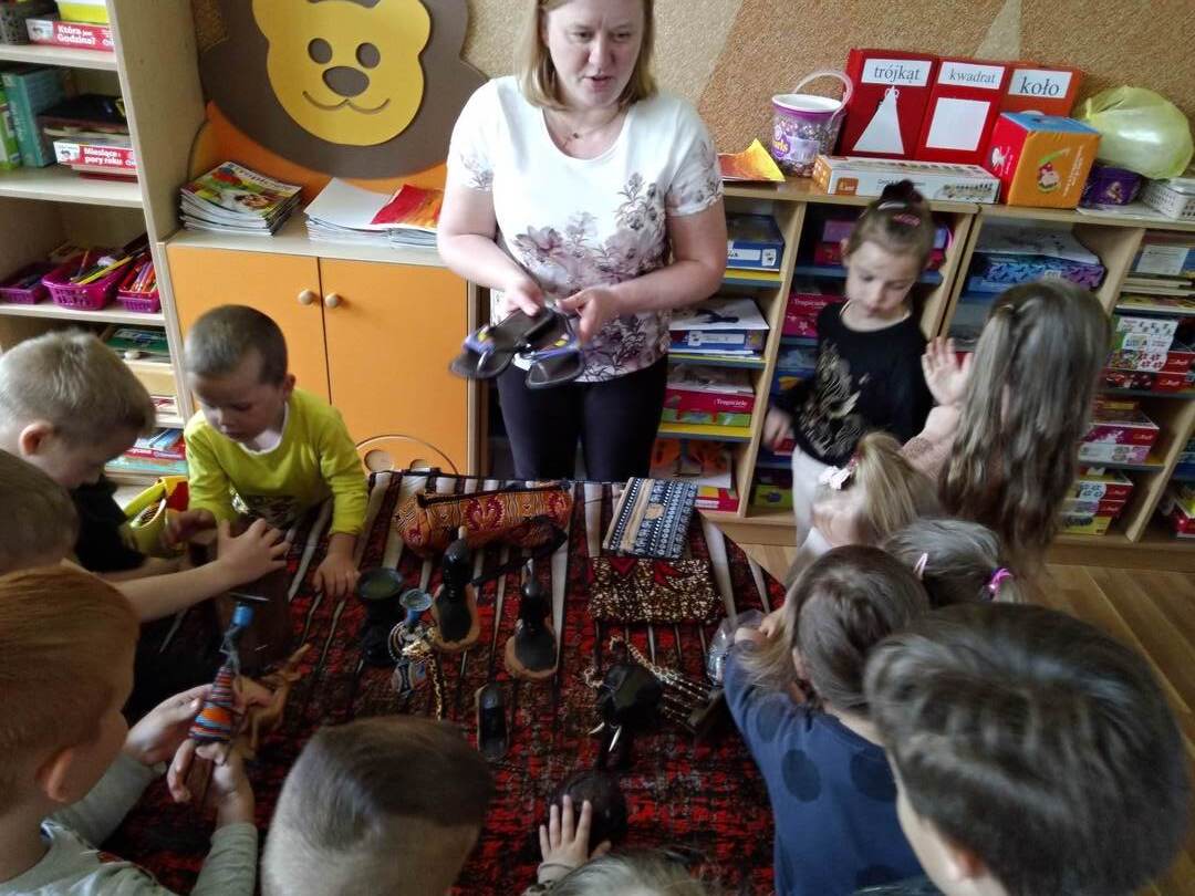 Zgodnie z kalendarzem świąt nietypowych świętowaliśmy dziś Dzień Afryki. Przygotowania trwały od kilku dni- poznawaliśmy florę i faunę, zwyczaje afrykańskie. Dziś gościliśmy Panią Olę, która kilka razy odwiedziła ten kontynent. Przywiozła mnóstwo zdjęć, figurek, ozdób, materiałów i albumów. Na koniec otrzymaliśmy upominki. Samodzielnie wykonaliśmy afrykańskie obrazy