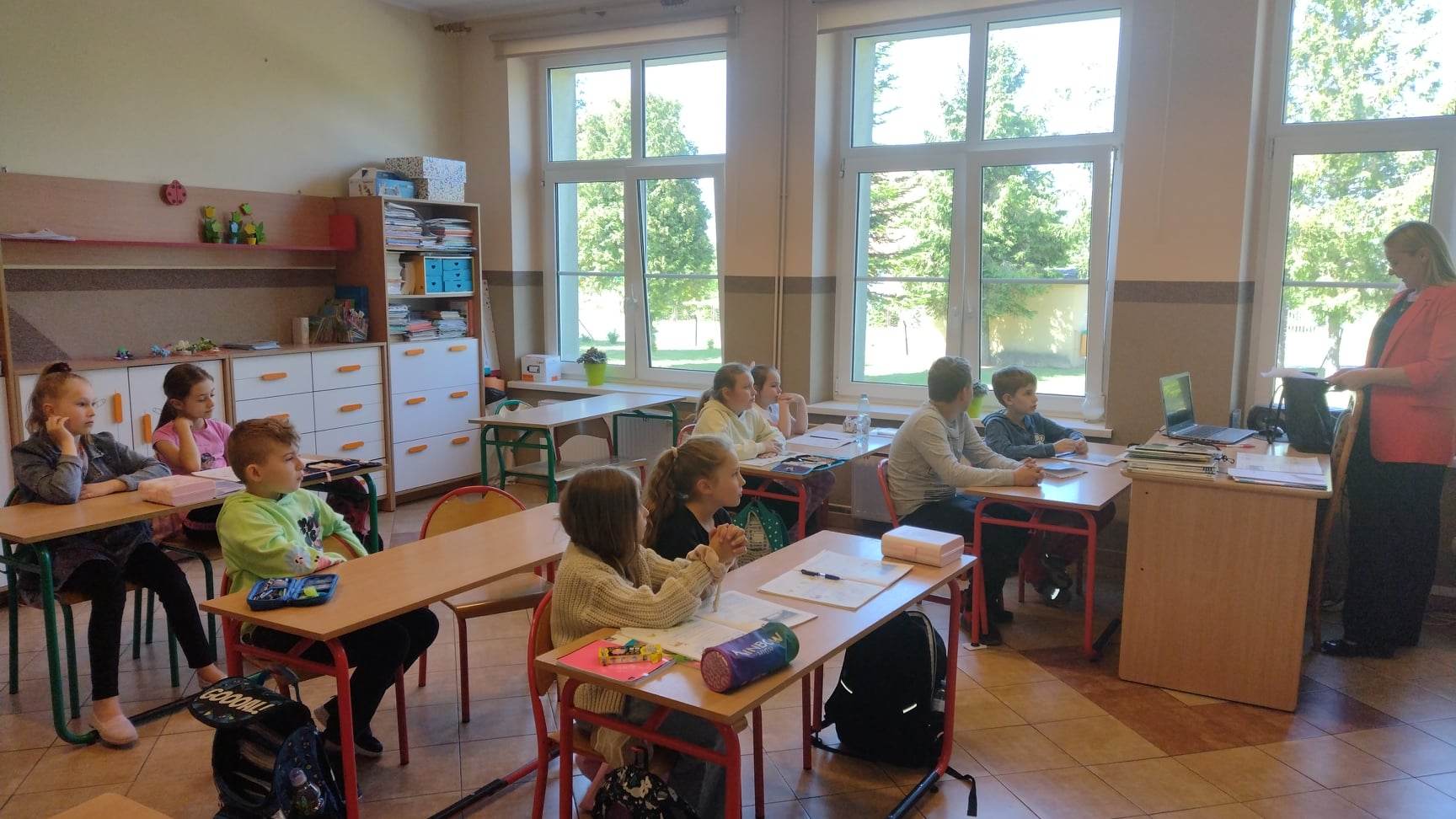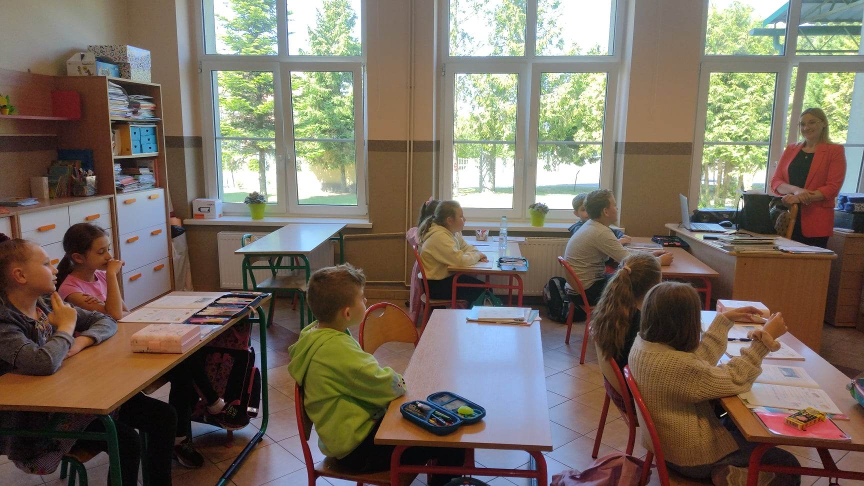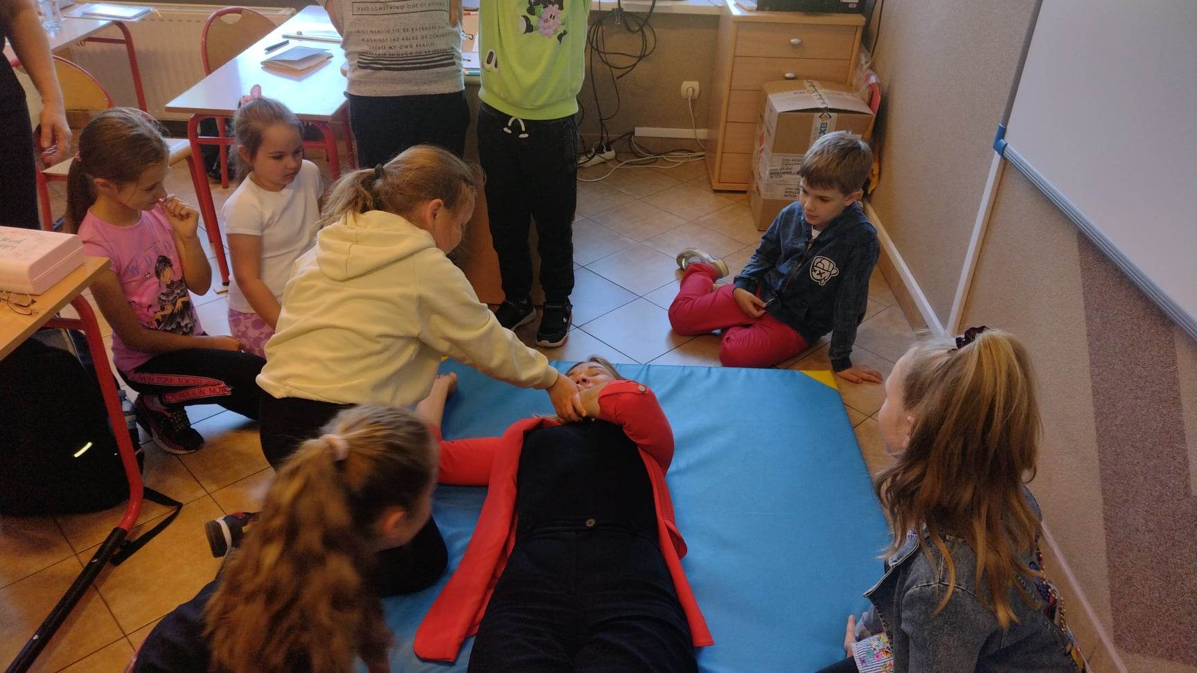 Dnia 31maja 2023 roku naszą szkołę odwiedziła pani dyrektor z oddziału banku PKO BP w Wieruszowie pani Żaneta Kaleja, któraprzeprowadziła niezwykłą lekcję pt. ,,Pierwsza pomoc krok po kroku” wśród uczniów klasy drugiej i trzeciej. Celem lekcji było utrwalenie wiedzy związanejz udzielaniem pierwszej pomocy, znajomości numerów