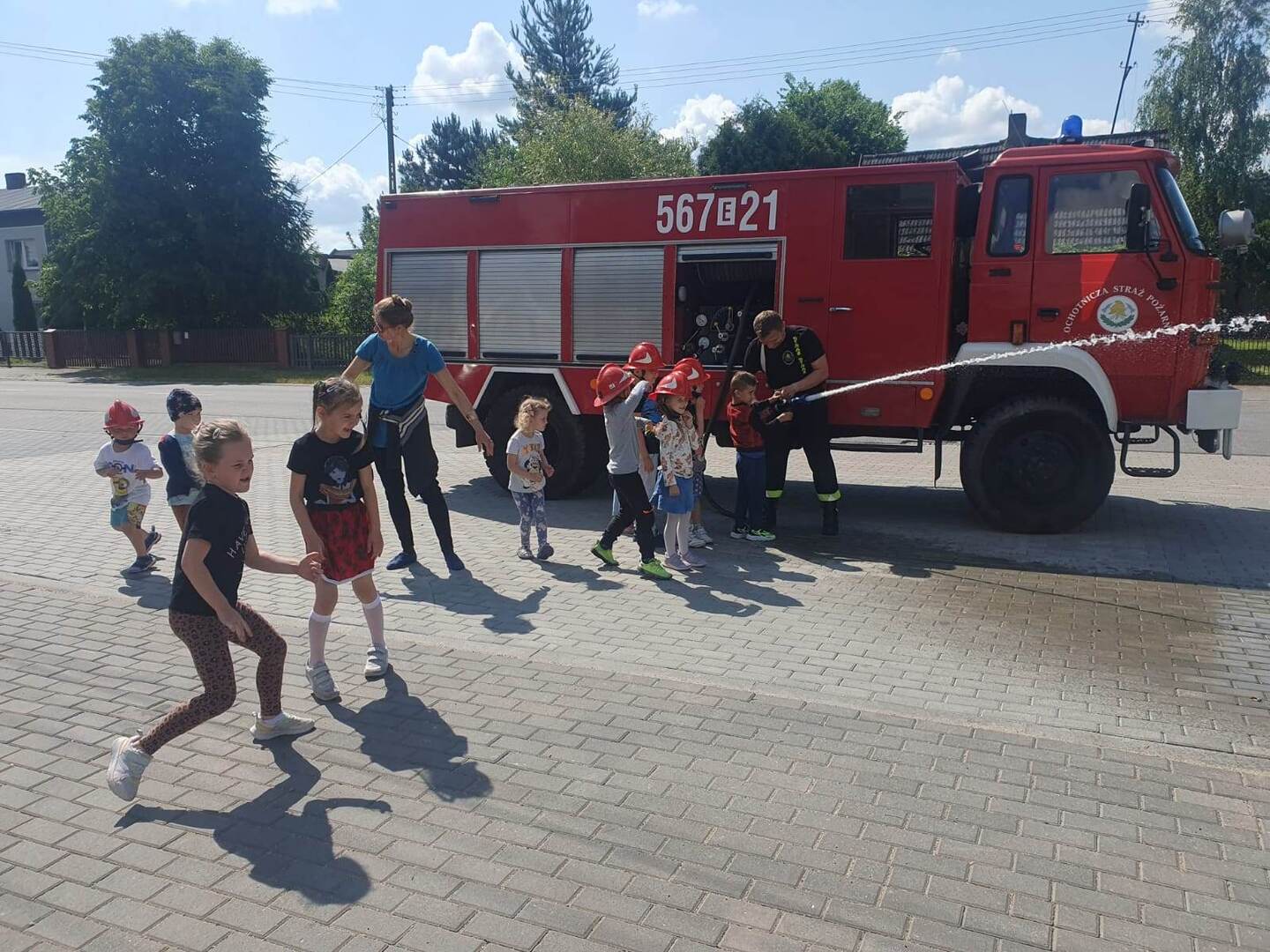 Ciekawość świata, to nasze drugie imię. Nie zwalniamy tempa i w poszukiwaniu kolejnych przygód wybraliśmy się do mieleszyńskiej OSP. Poznaliśmy pracę strażaków, różne stroje, wyposażenie remizy oraz wozu strażackiego. Mieliśmy niebywałą okazję podróży pojazdem strażackim oraz spróbowaliśmy ugasić wodą niby-pożar. To było bardzo ciekawe spotkanie. Kto wie, może jest wśród nas przyszły strażak- ochotnik?