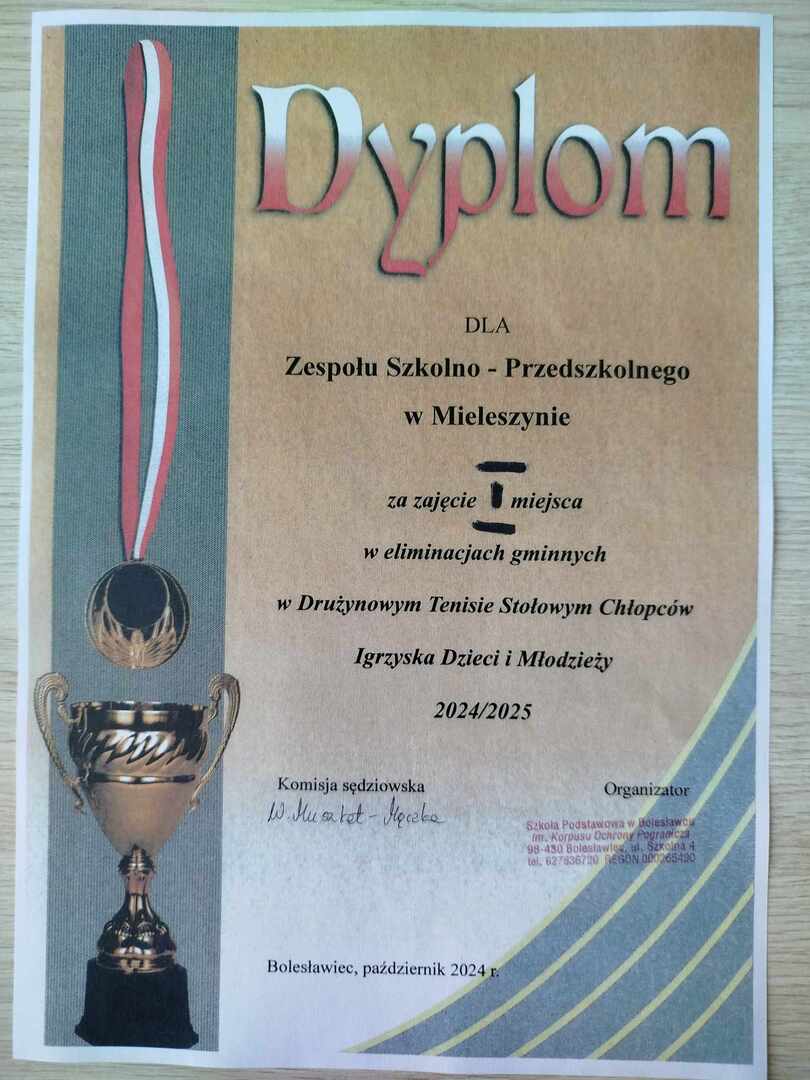 W dniu 18.10.2024 w hali sportowej w Szkole Podstawowej w Bolesławcu im. Korpusu Ochrony Pogranicza, odbył się Drużynowy Turniej w Tenisie Stołowym Chłopców, który zgromadził zespoły ze Szkoły Podstawowej w Mieleszynie i Szkoły Podstawowej w Bolesławcu. Celem turnieju było promowanie aktywności fizycznej i wyłonienie najlepszej drużyny w gminie, która reprezentować będzie Miasto i Gminę Bolesławiec w rozgrywkach powiatowych.