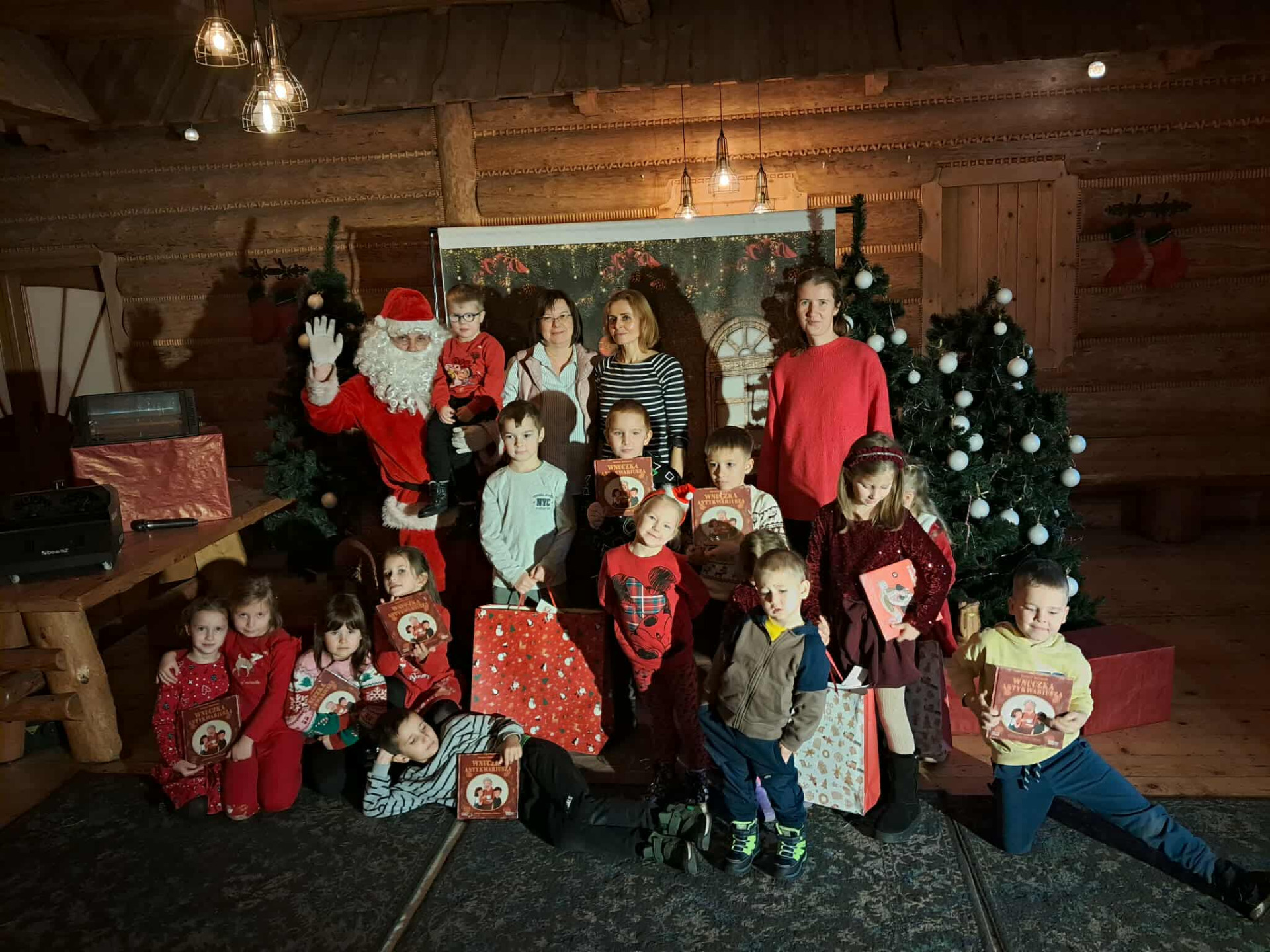 5 grudnia 2025 przedszkole i klasa pierwsza odwiedziła chatkę Świętego Mikołaja w Kępnie. Mikołaj miał czerwony strój, długą, białą brodę i dźwigał na plecach bardzo ciężki worek, a w nim prezenty. Pomimo braku białego puchu, jak co roku przybył na czas. Spotkanie z Mikołajem przebiegało w bardzo radosnej i przyjaznej atmosferze. Dzieci śpiewały i tańczyły Mikołajowi piosenki. Święty Mikołaj obdarował wszystkie dzieci wspaniałymi paczkami. Jak co roku dzieci miały zrobione z Mikołajem pamiątkowe zdjęcia. Na twarzach dzieci malowała się wielka radość i przejęcie, a także nadzieja na kolejne spotkanie. Święty Mikołaju bardzo dziękujemy za spotkanie i do zobaczenia za rok!
